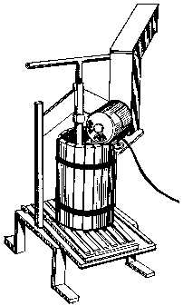 Professional Wine Basket Presses: These wooden basket presses are small versions of the presses used in France and California for over 100 years. Solidly built to withstand generations of use. See Picture (7K)